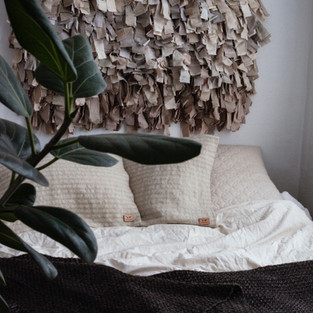 One summer, a few years ago, I did an experiment. I buried ten old sheets in mirs and mug. There they had to lie. Sometimes I went there and moved around with a stick. In the autumn, I picked them up. Mire water and mud had dyed the sheets. Of these, I wove a rug, a little grey-brown and modest.